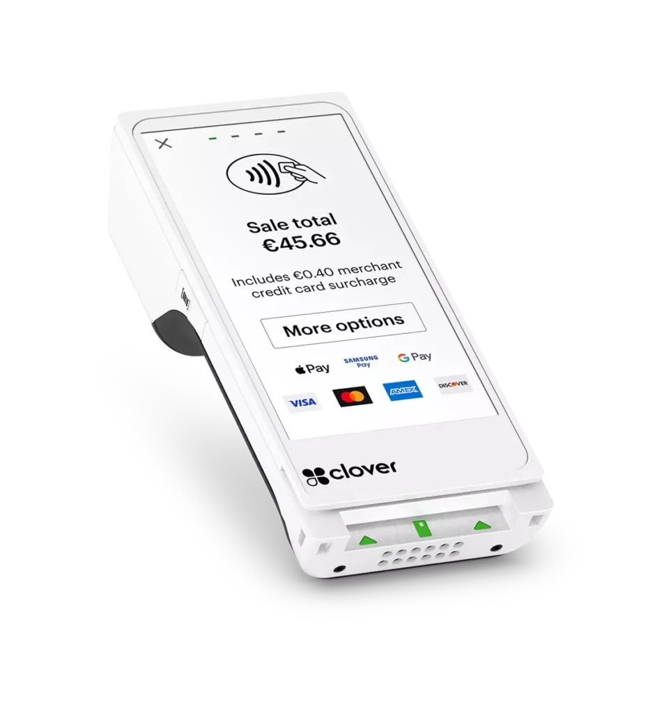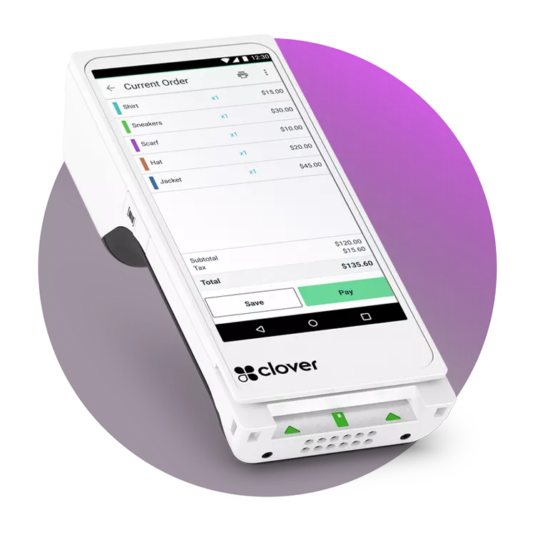 Serve customers better – at the counter, in line, at the table or in the field – with the Clover Flex handheld POS system. This all-in-one device provides built-in capabilities to accept payments, conduct business, and track sales, all from the palm of your hand.